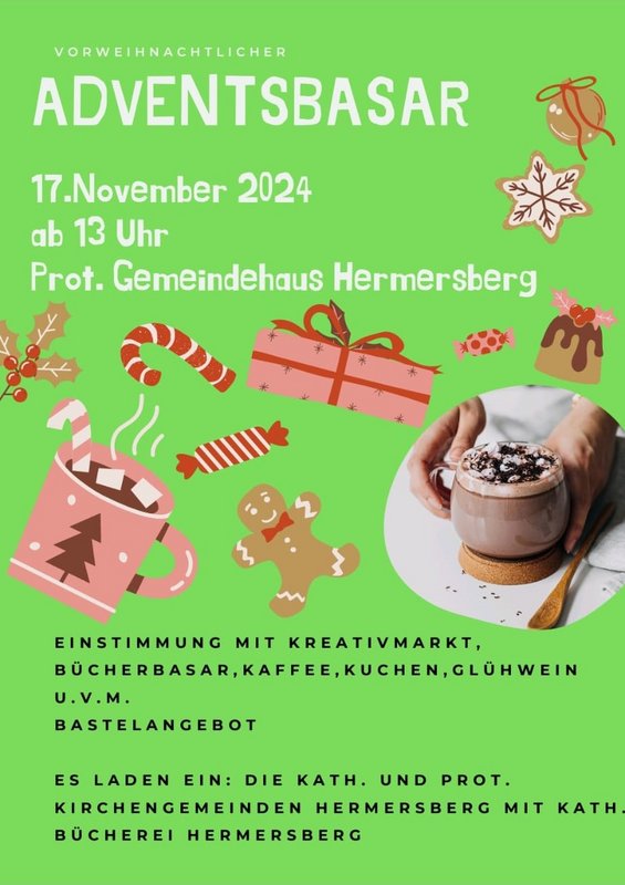 Wir nehmen auch dieses Jahr wieder beim ökumenischen Adventsbasar am 17.11.2024 teil. Wir freuen uns auf zahlreiches Kommen.